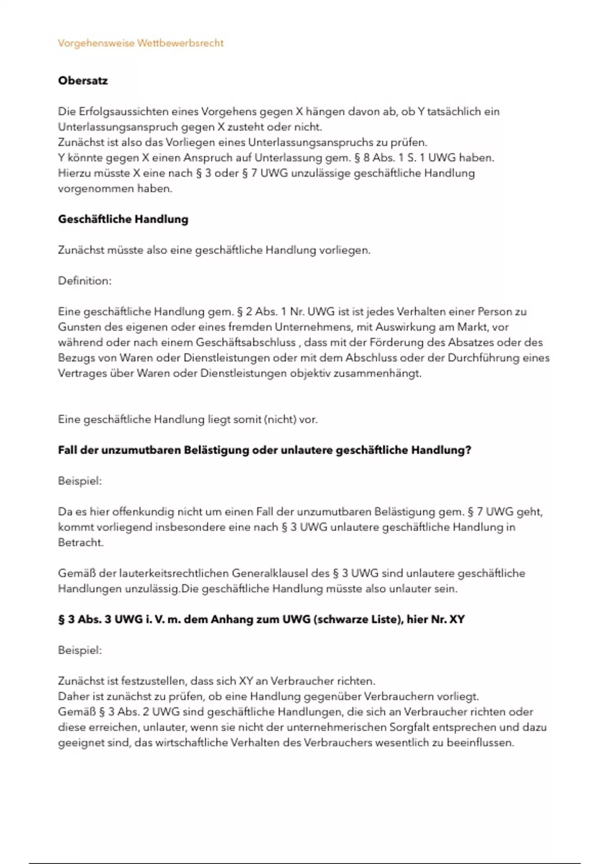 Hierzu m sste X eine nach § 3 oder § 7 UWG unzul ssige gesch ftliche Handlung