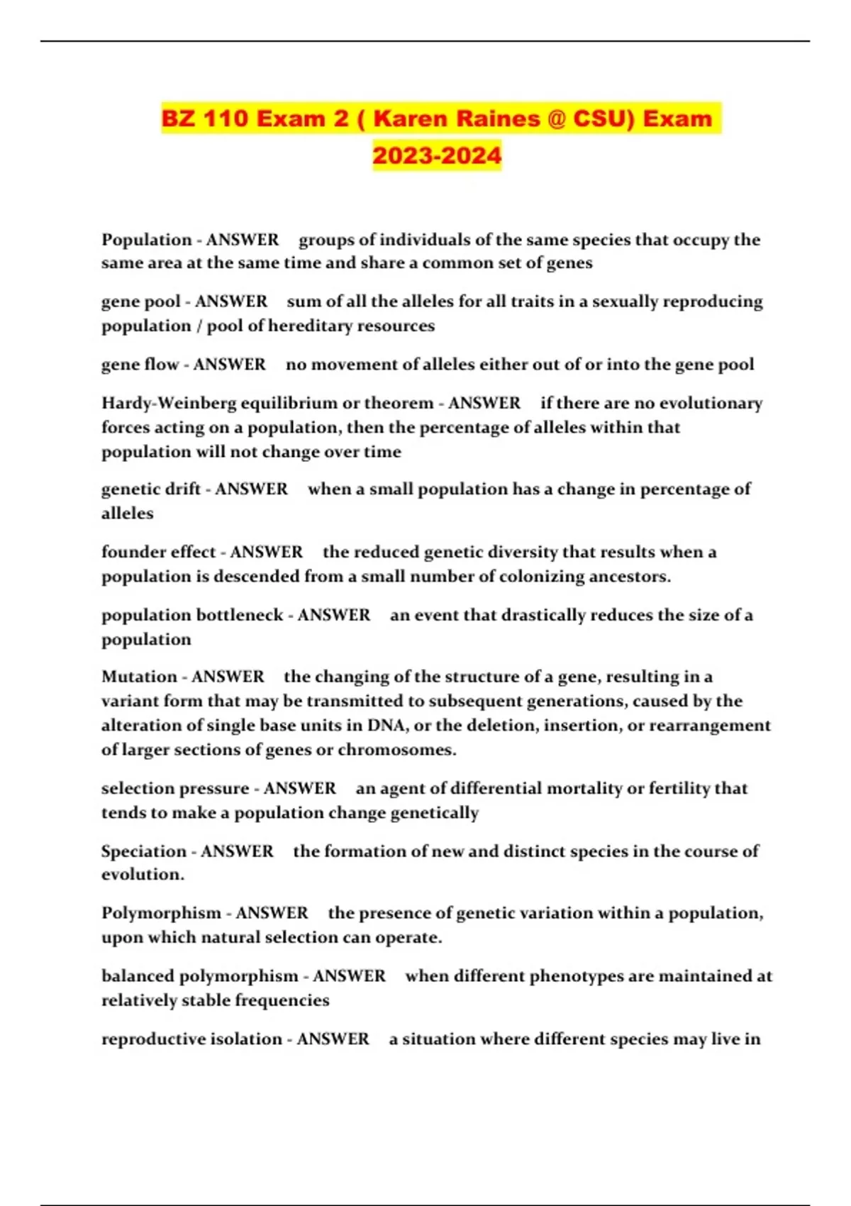bz 110 exam 2 karen raines csu exam 2023 2024