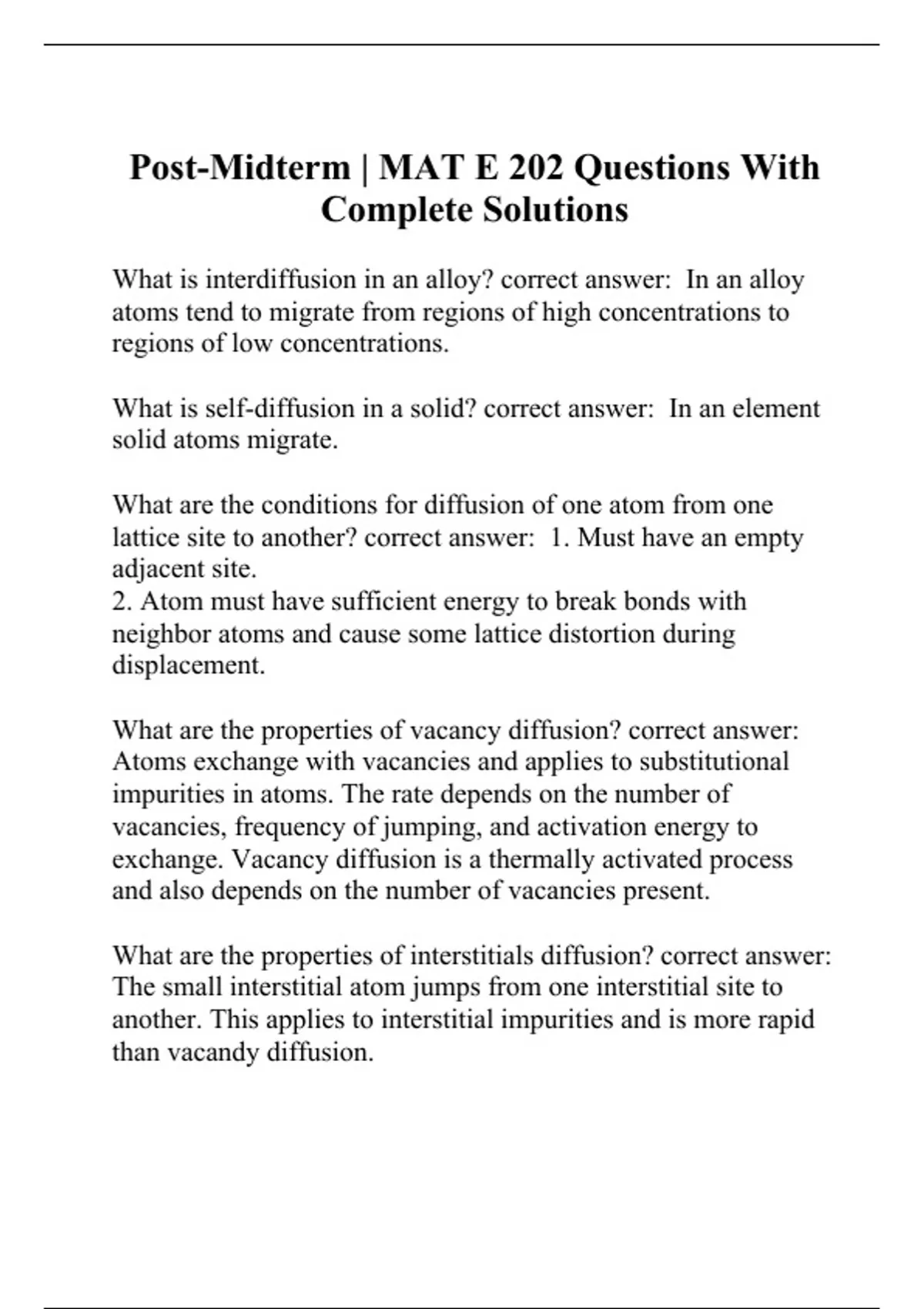 Post-Midterm | MAT E 202 Questions With Complete Solutions