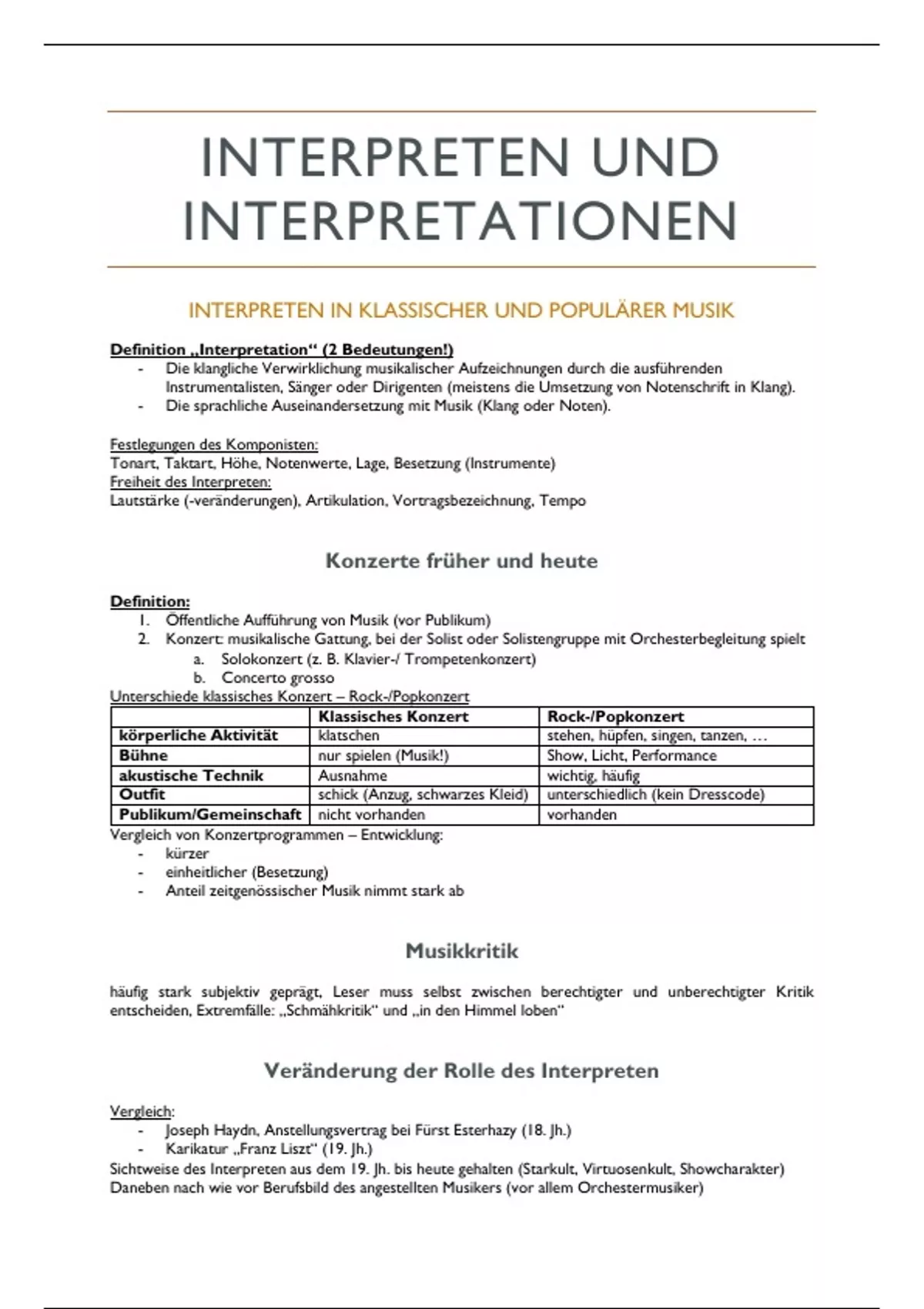 Sichtweise des Interpreten aus dem 19. Jh. bis heute gehalten (Starkult, Virtuosenkult, Showcharakter)