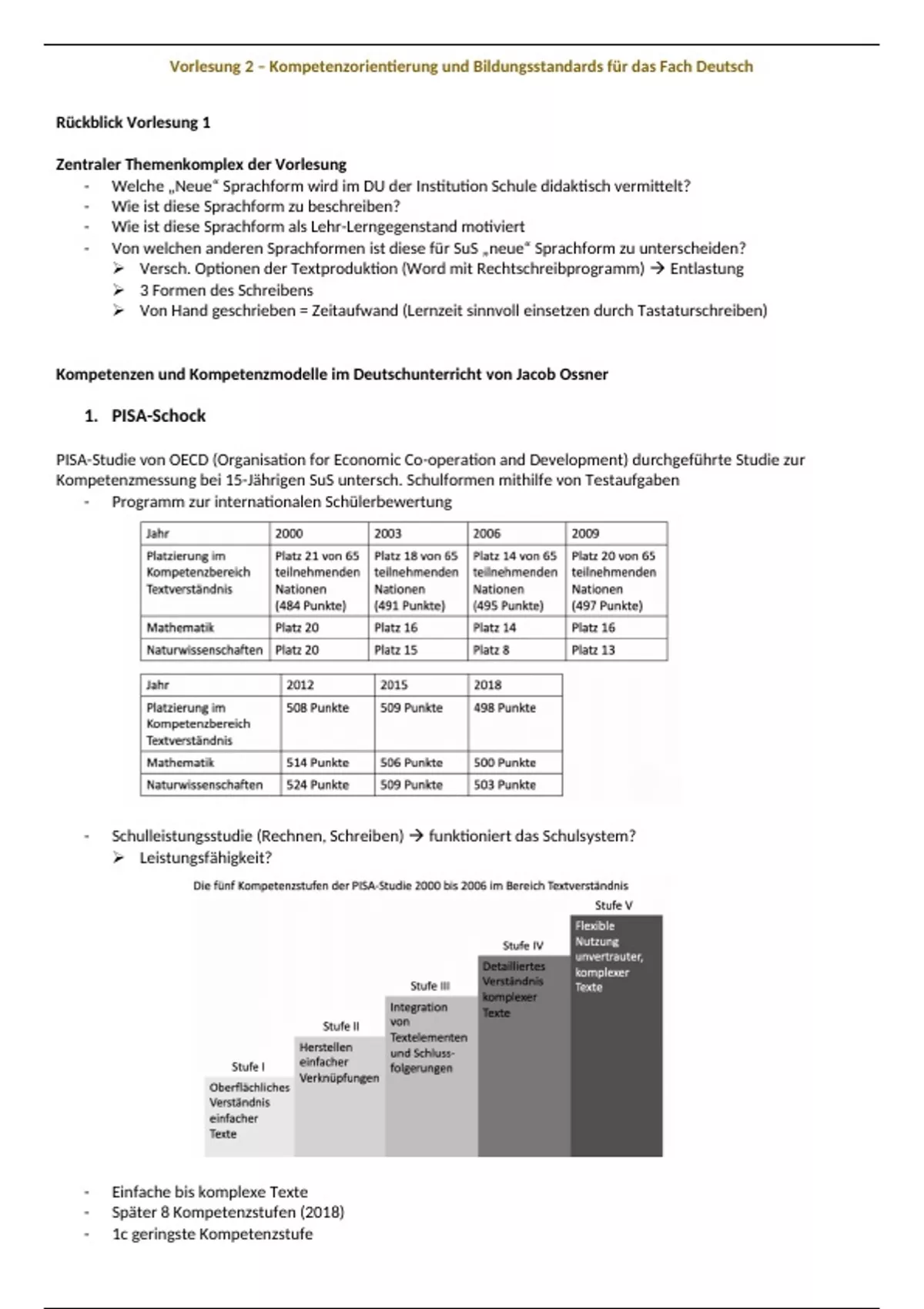 Vorlesung 2 – Kompetenzorientierung und Bildungsstandards für das Fach Deutsch