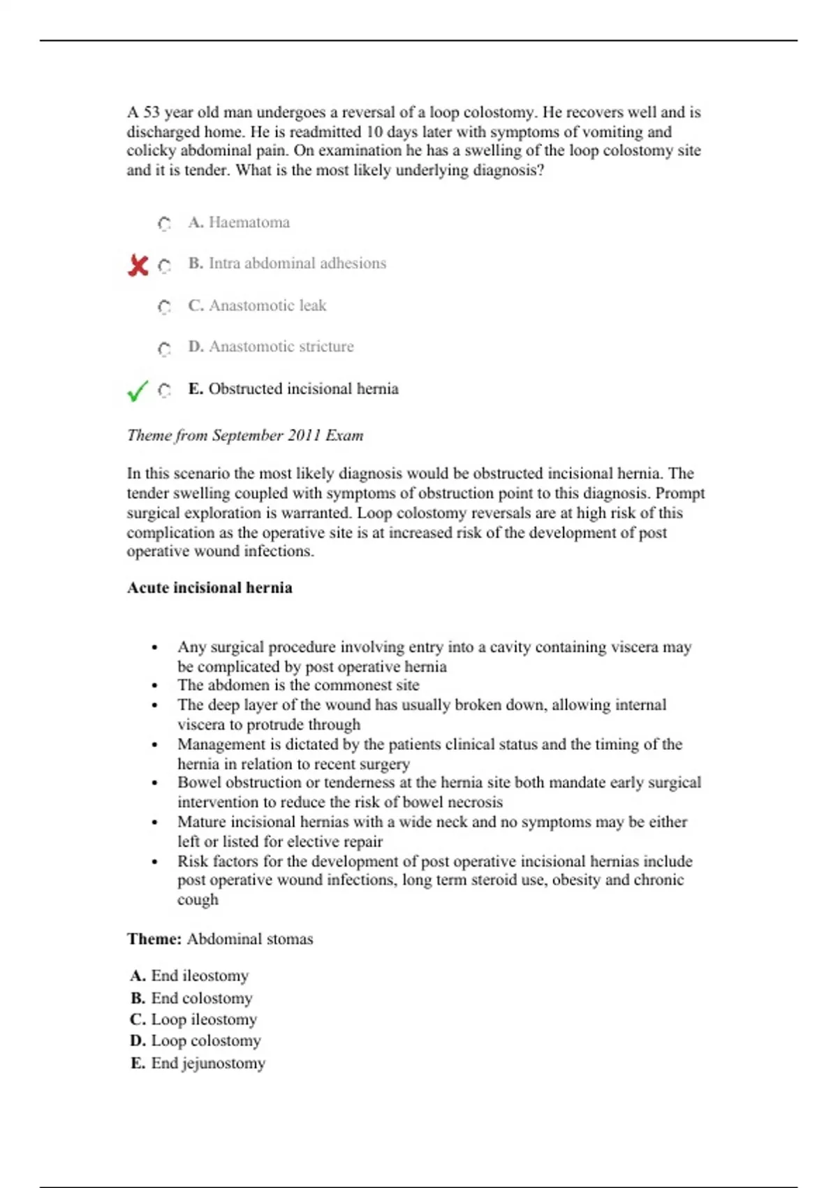 E. Obstructed incisional hernia