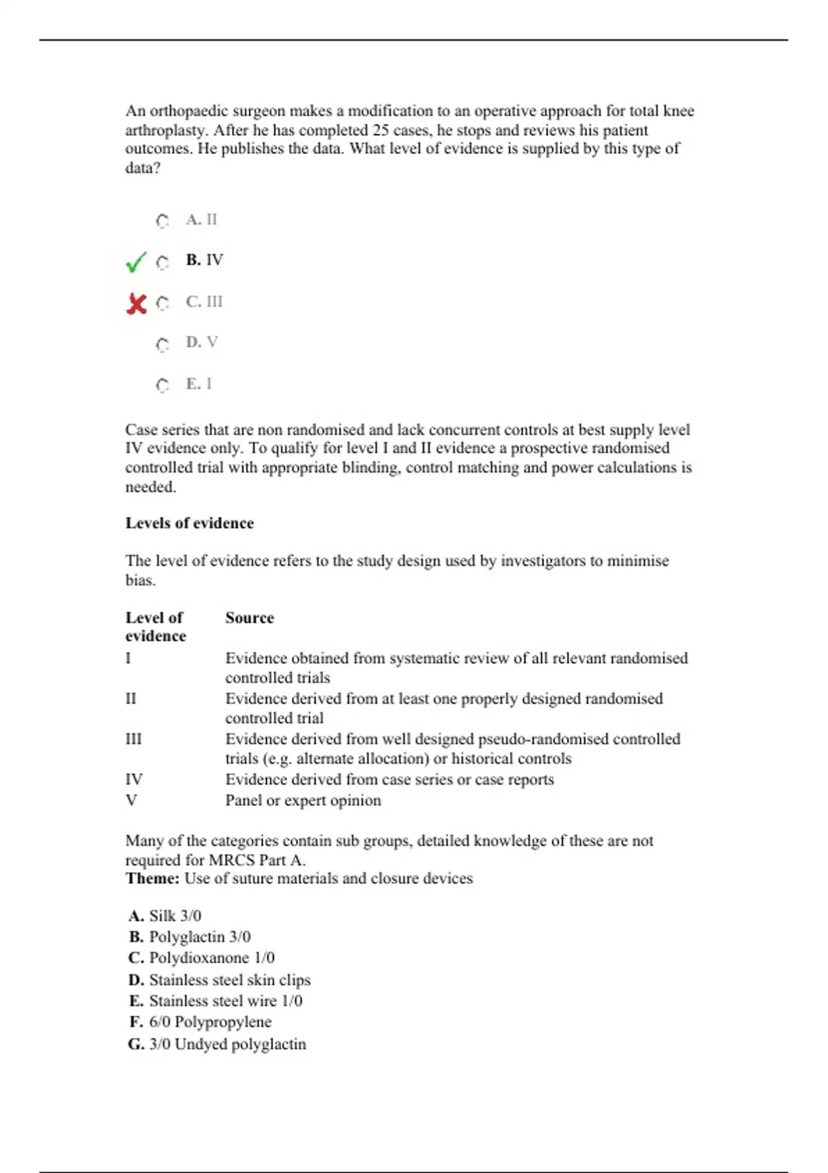 IV evidence only. To qualify for level I and II evidence a prospective randomised