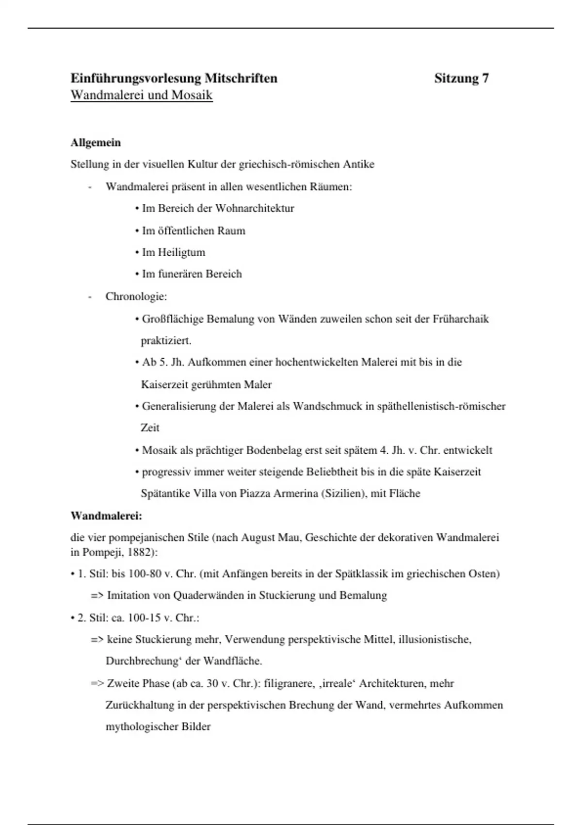 Mitschriften zur Einführungsvorlesung - Wandmalerei und Mosaik Sitzung