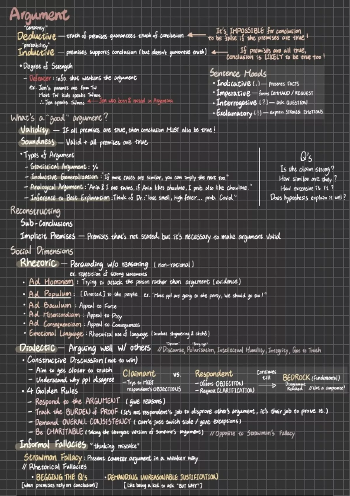 A summary of essential topics covers the basic rules of sound reasoning in the form of logic and argumentation theory. It has key concepts and is perfect for preparing for the exam!