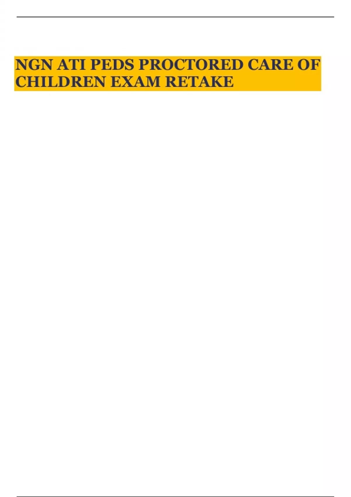 NGN ATI PEDS PROCTORED CARE OF CHILDREN EXAM RETAKE
