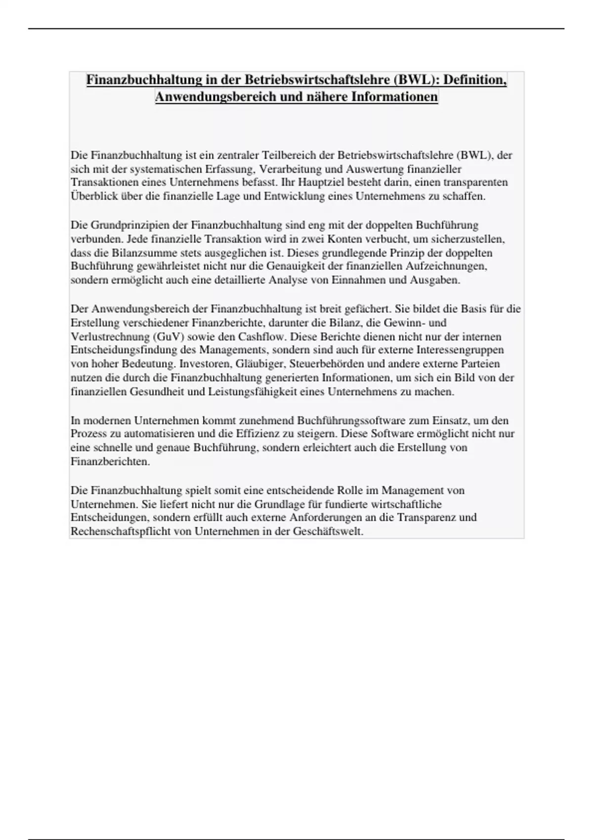 Die Finanzbuchhaltung ist ein zentraler Teilbereich der Betriebswirtschaftslehre (BWL), der
