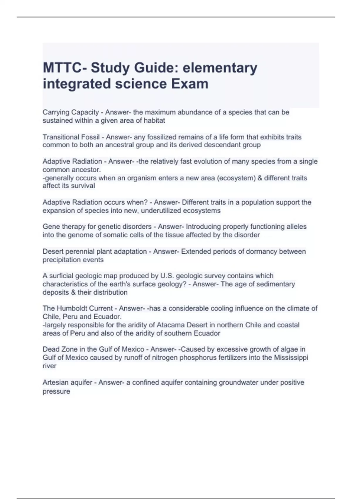 MTTC- Study Guide elementary integrated science Exam Questions and Answers