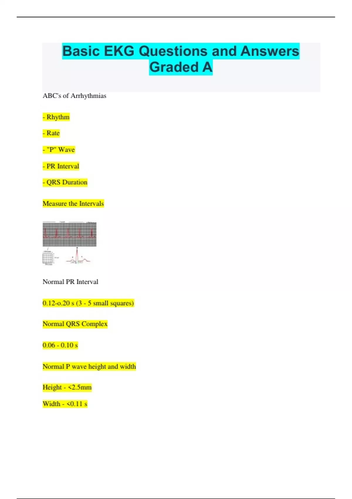 Basic EKG Questions and Answers Graded A