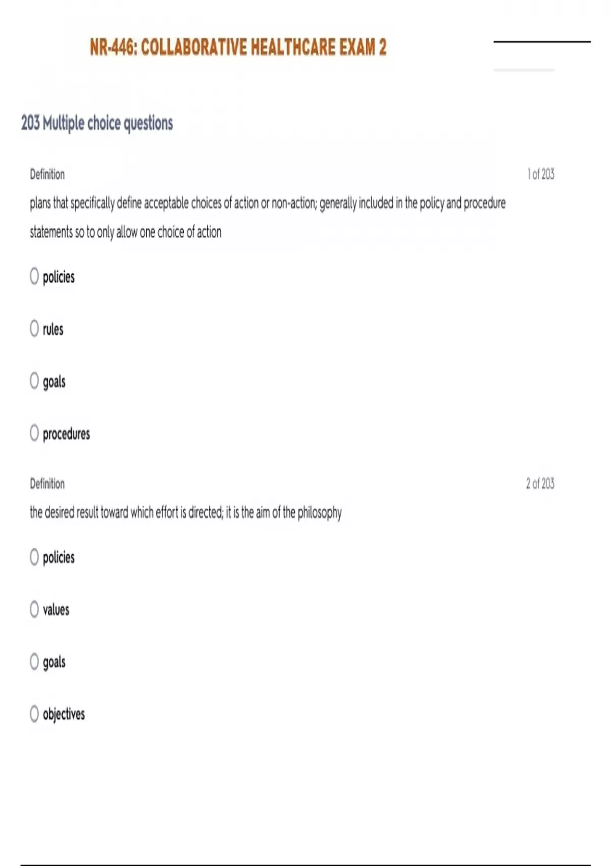 NR-446: COLLABORATIVE HEALTHCARE EXAM 2 MODULE 1