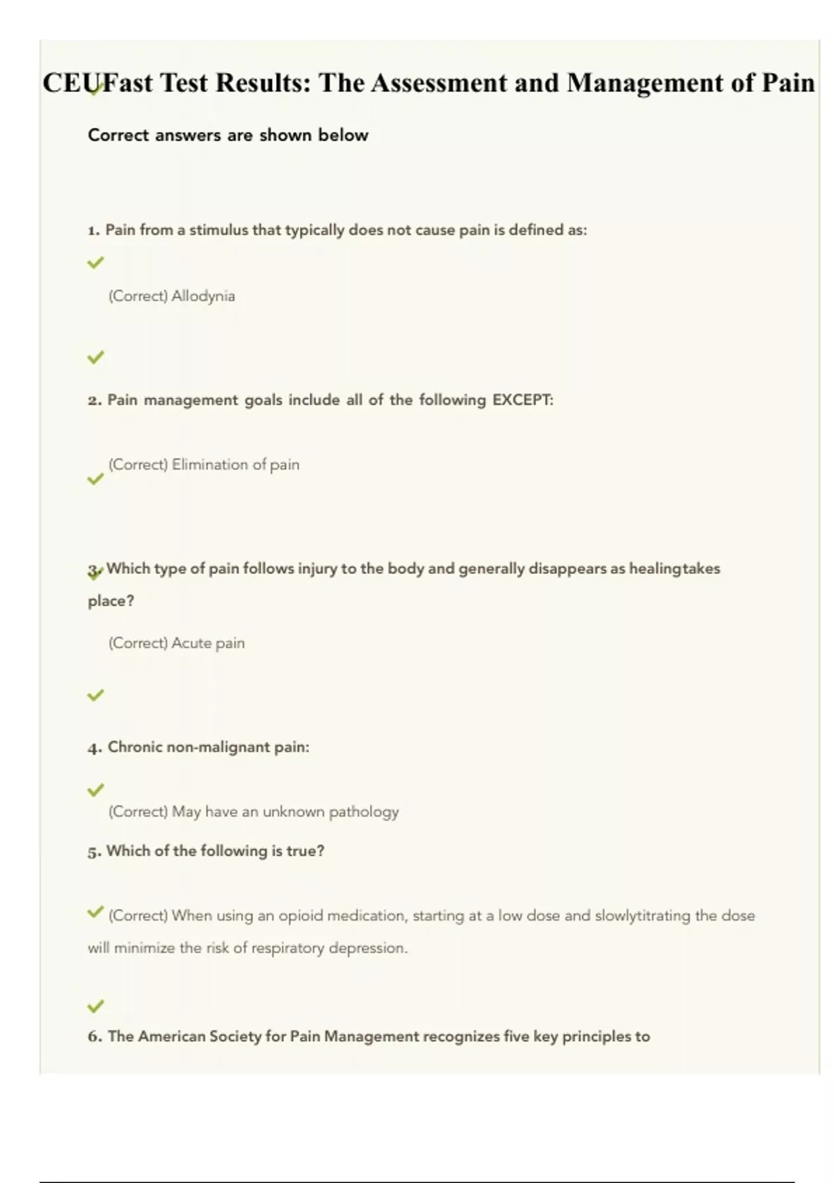 CEUFast Test Results- The Assessment and Management of Pain
