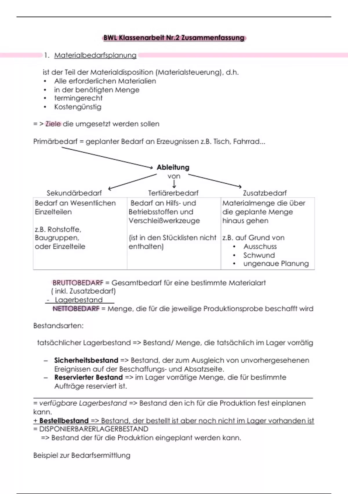 BWL Klassenarbeit Nr.2 Zusammenfassung