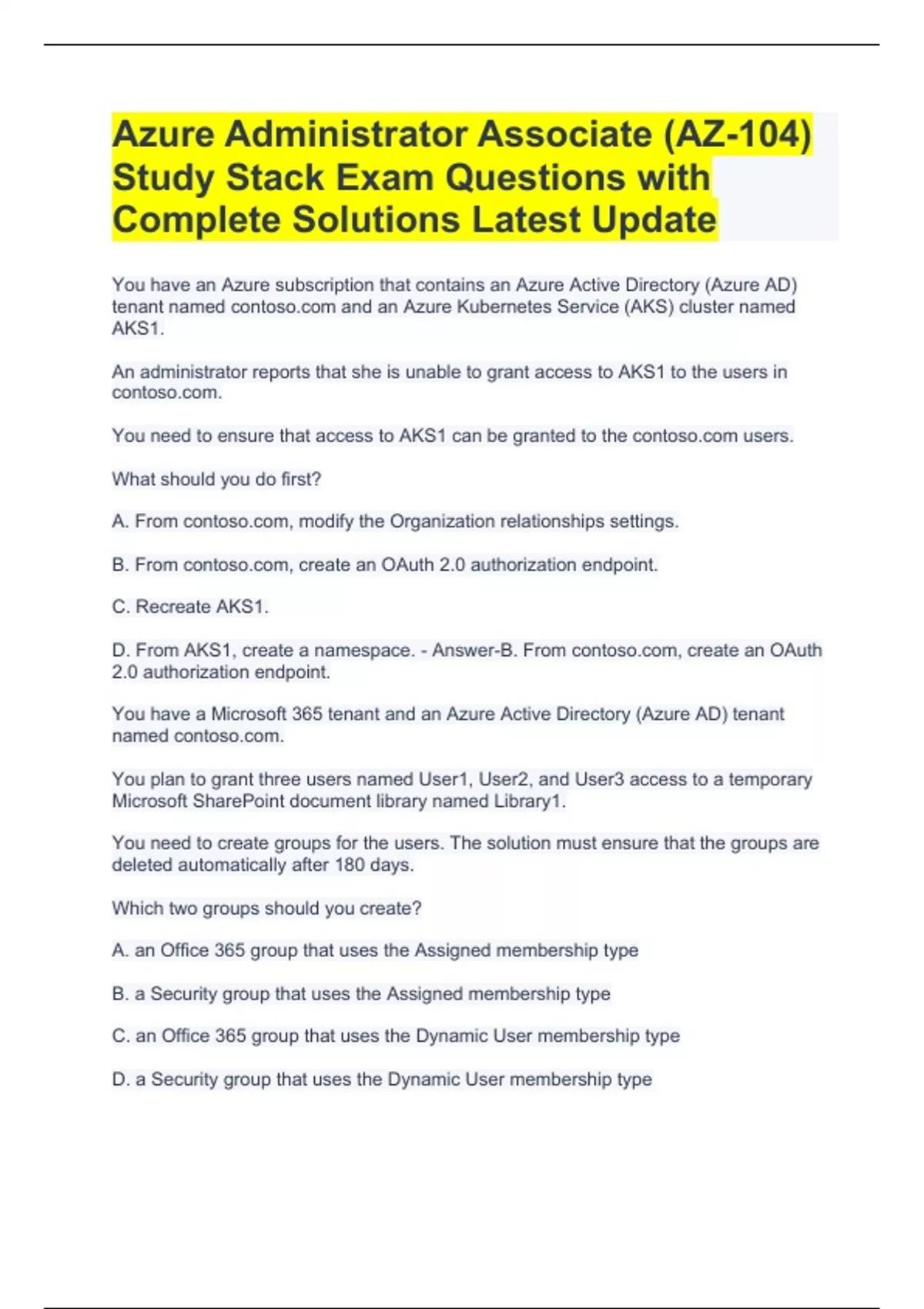 D. From AKS1, create a namespace. - Answer-B. From contoso.com, create an OAuth