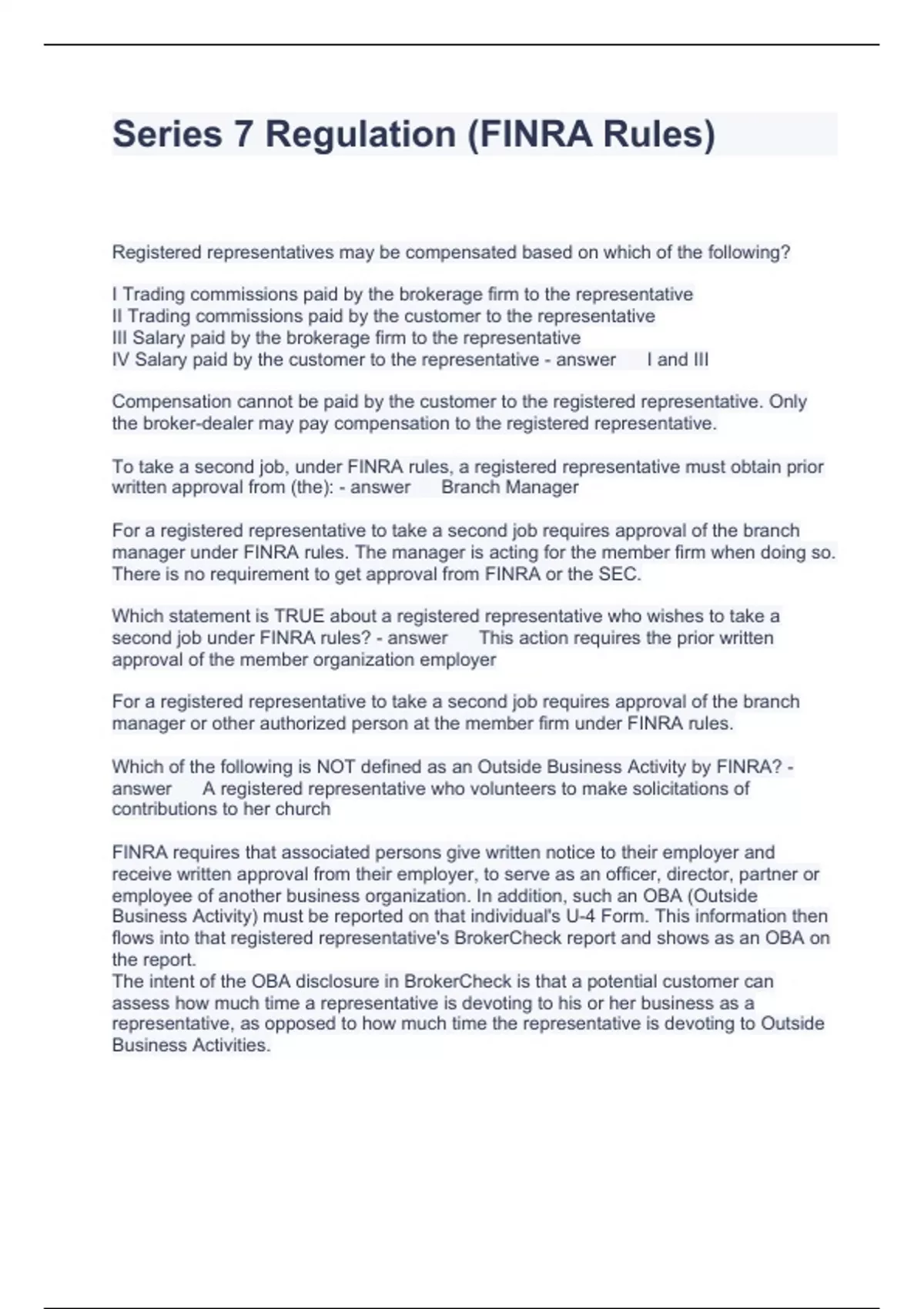 Series 7 Regulation (FINRA Rules) Questions and Answers Graded A