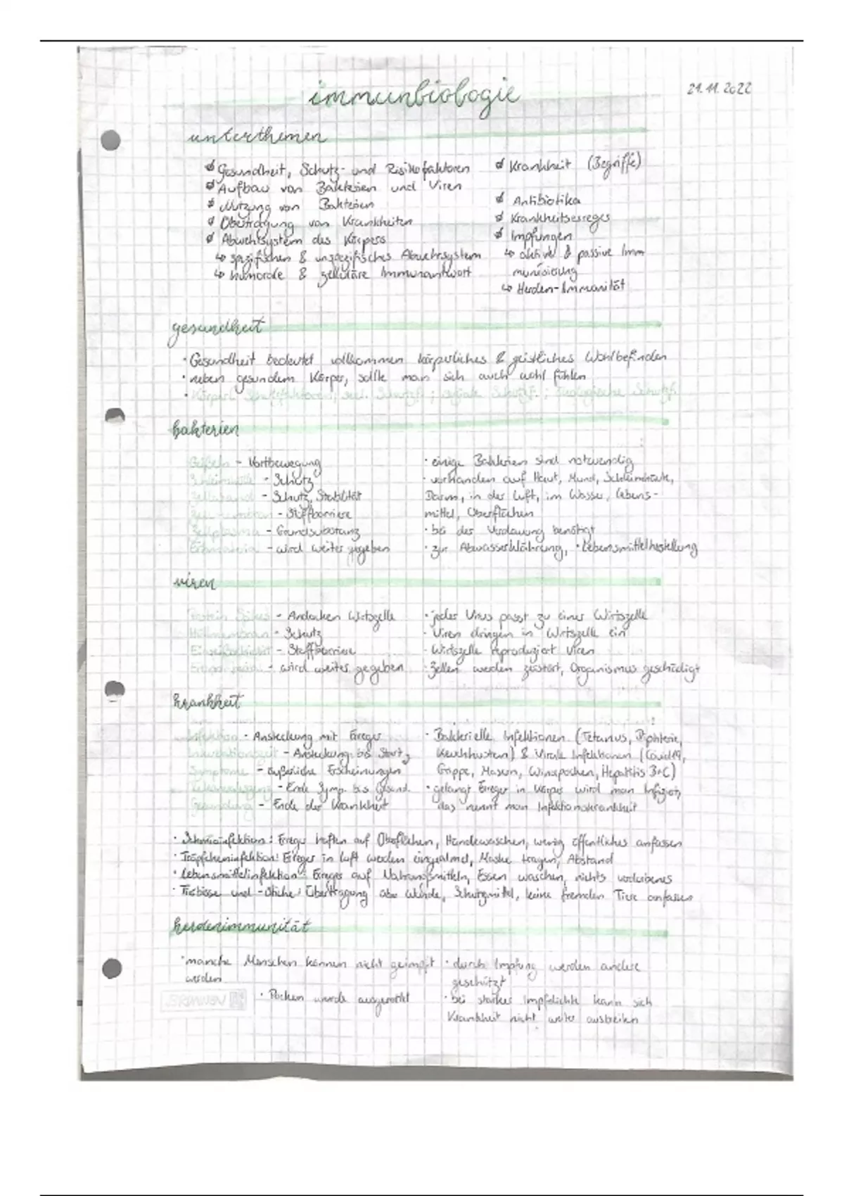 Ausführlicher Lernzettel für Klassenarbeit in der 9. Klasse zum Thema Immunbiologie, ästhetisch & ordentlich gestaltet.