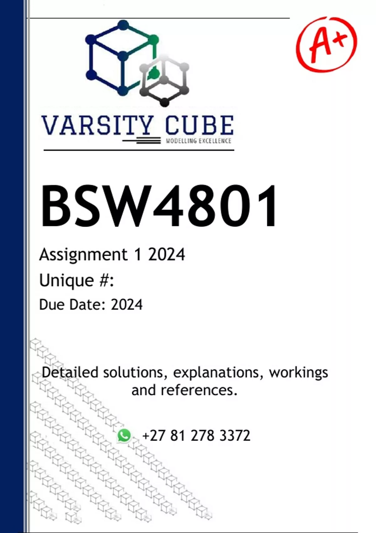 BSW4802 Assignment 1 (ANSWERS) 2024 - DISTINCTION GUARANTEED Answers, guidelines, workings and references .................... A social worker working in an outpatient mental health clinic and is part of a multi-disciplinary team assisting clients with mental health problems. The social worker is also responsible to initiate group work and community work projects in the community where the clinic is residing. George is brought to a community outpatient mental health clinic due to his parent’s observation that he is “not acting like a normal 13-year-old.” George did show great talent and potential to develop as a soccer player but decided to quit the sport without any reason. They brought him to the clinic because they think he is suffering from the same mental illness his mother has, and the last straw was that he was found with marijuana in his bedroom. The family reports a long and detailed family history of substance abuse. George’s mother was a gifted artist but because of her depression she did not pursue her career in painting further. George’s father was a leader in initiating religious studies for church members, but started to withdraw from assisting as a leader in the church when his wife was diagnosed with depression. George’s mother lives with debilitating symptoms of anxiety and intermittent depressive episodes. The community in which the mental health clinic is rendering services is a neighbourhood charaterised by adolescents who are experimenting with drugs. Most of the parents in the area are ignorant about the impact of using drugs on adolescents’ development and are not equipped with the necessary skills to deal with the adolescents experimenting with drugs. 1. Elaborate on the guidelines from a strengths perspective that the social worker will apply when intervening with the family. (10) 2. The second step of the Generalist Intervention Model (GIM) is the assessment phase. Propose the steps of an assessment you as a social worker will conduct, and the type of questions you will ask the family during the assessment phase from a strength perspective. (15) 18 3. Recommend and explain FIVE different roles a social worker will fulfil in a multidisciplinary team in the clinic setting illustrated in the case study. (5) 4. The social worker may decide to do group work with teenagers experimenting with drugs who are part of the clinic’s client system. Explain the factors which you as a social worker will consider in the pre-group planning and beginning phase of a group work series. (15) 5. Identify four types of groups a social worker can conduct and choose and motivate the type of group which will be appropriate to conduct with teenagers experimenting with drugs. (10) 6. The social worker wants to facilitate a group work session about the dangers of marijuana (dagga) abuse. Propose the outline of such a session. (5) 7. Select and motivate which practice model of Weyers (2011) can be implemented to assist the community as described in the case study. (5) 8. The social worker has certain primary roles to fulfil for the specific selected practice model of Weyers (2011). Elaborate on the specific roles as described in Weyers (2011) the social worker will fulfil in the implementation of the specific practice model. (5) 9. The second step in the community work process is the identifying and analysing of the impediments. Compile the tasks to be completed by the social worker FOR THE SECOND STEP according to Weyers (2011) for the chosen practice model. (20)