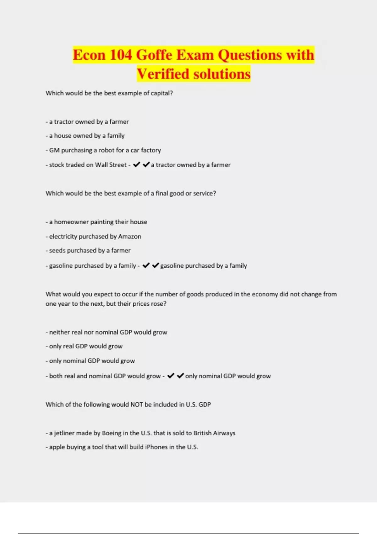 Econ 104 Goffe Exam Questions with Verified solutions