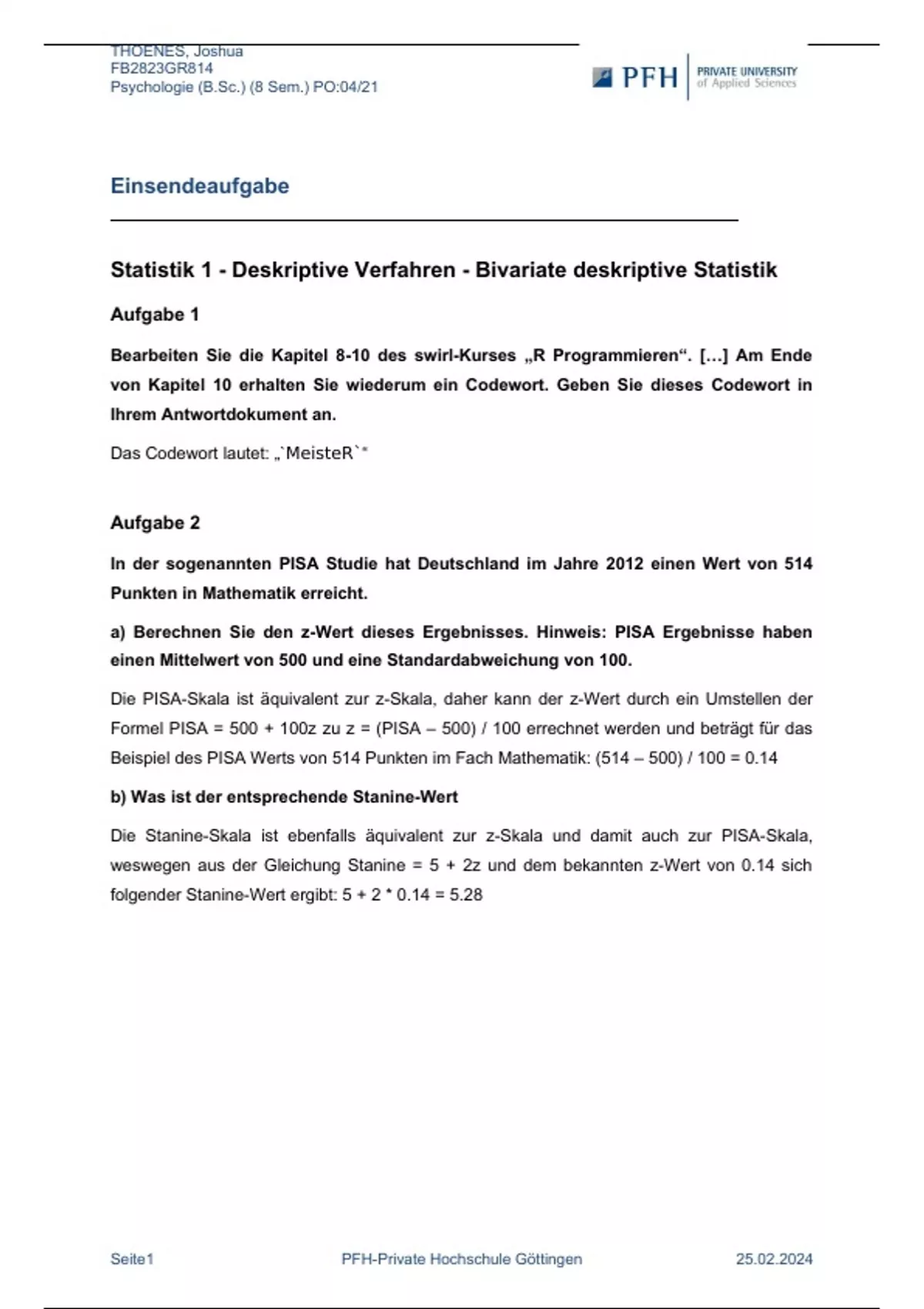 a) Berechnen Sie den z-Wert dieses Ergebnisses. Hinweis: PISA Ergebnisse haben