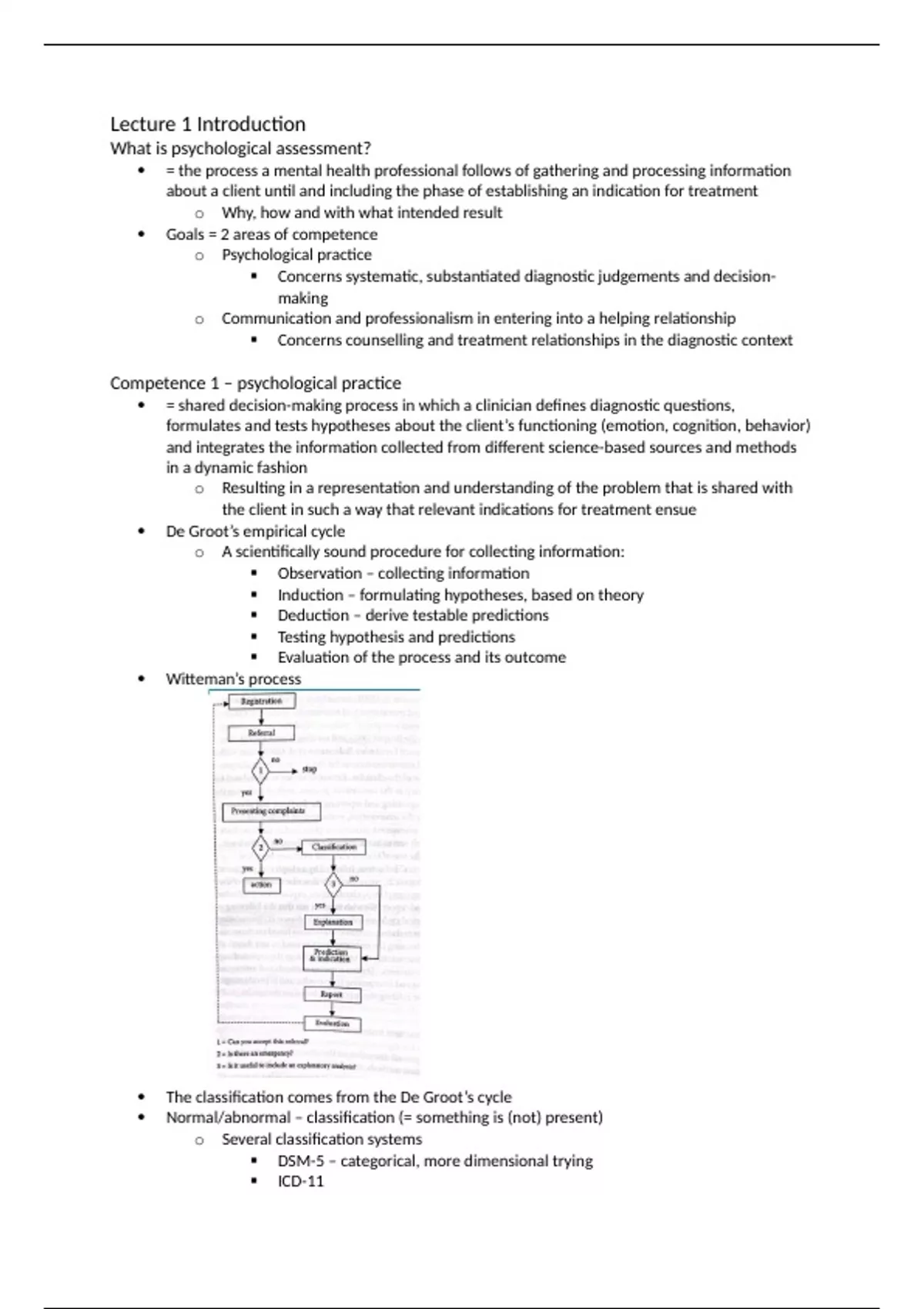 A summary of the course Psychological Assessment. The summary consists of the lectures given and the chapters of the two books from Witteman and Van der Molen. If you have any questions, you can message me :)