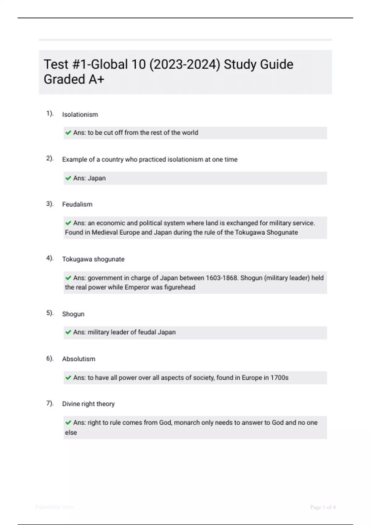 Ans: government in charge of Japan between 1603-1868. Shogun (military leader) held