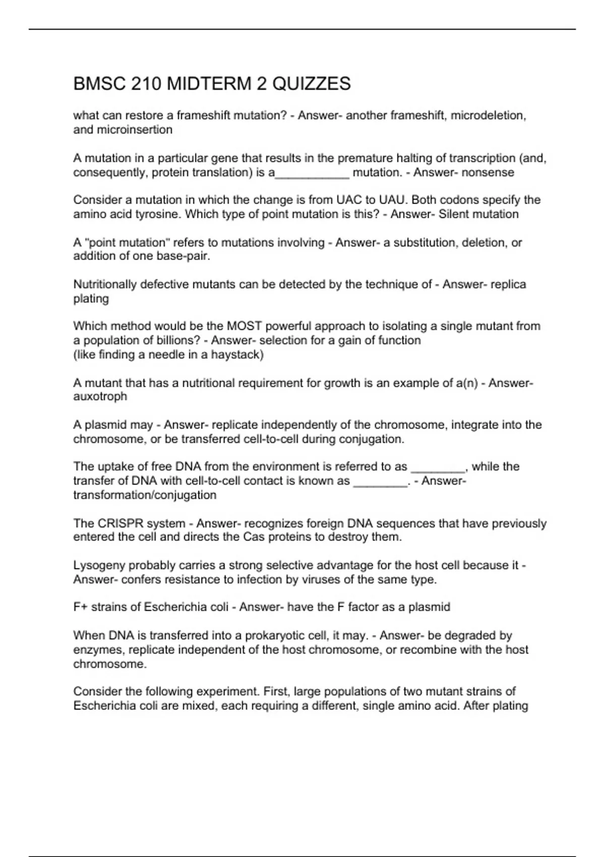 BMSC 210 MIDTERM 2 QUIZZES