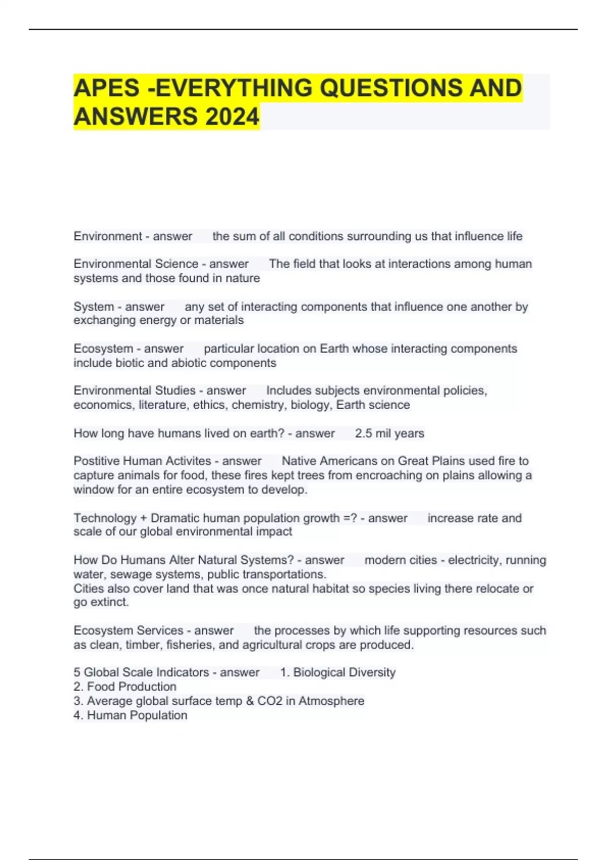 APES -EVERYTHING QUESTIONS AND ANSWERS 2024