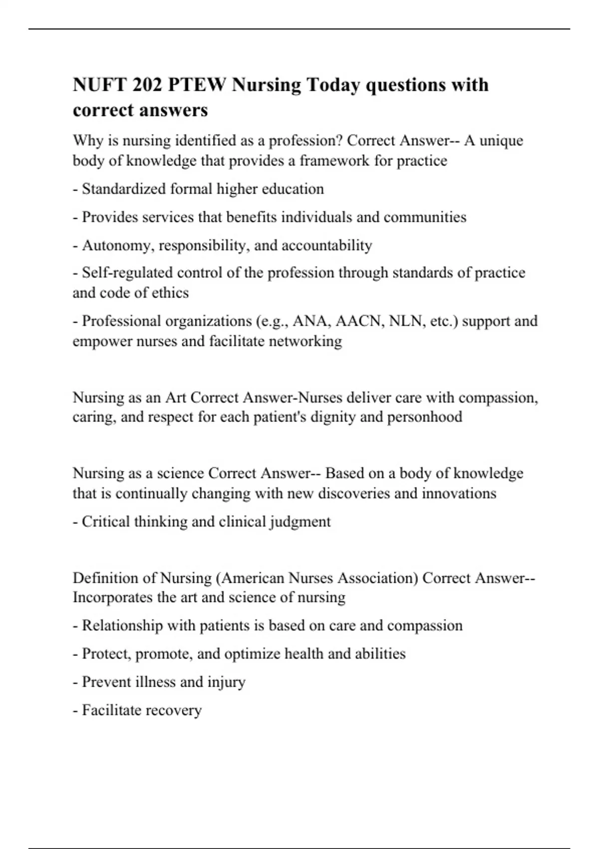 NUFT 202 PTEW Nursing Today questions with correct answers