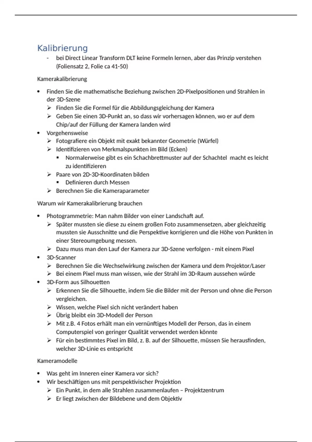 - bei Direct Linear Transform DLT keine Formeln lernen, aber das Prinzip verstehen