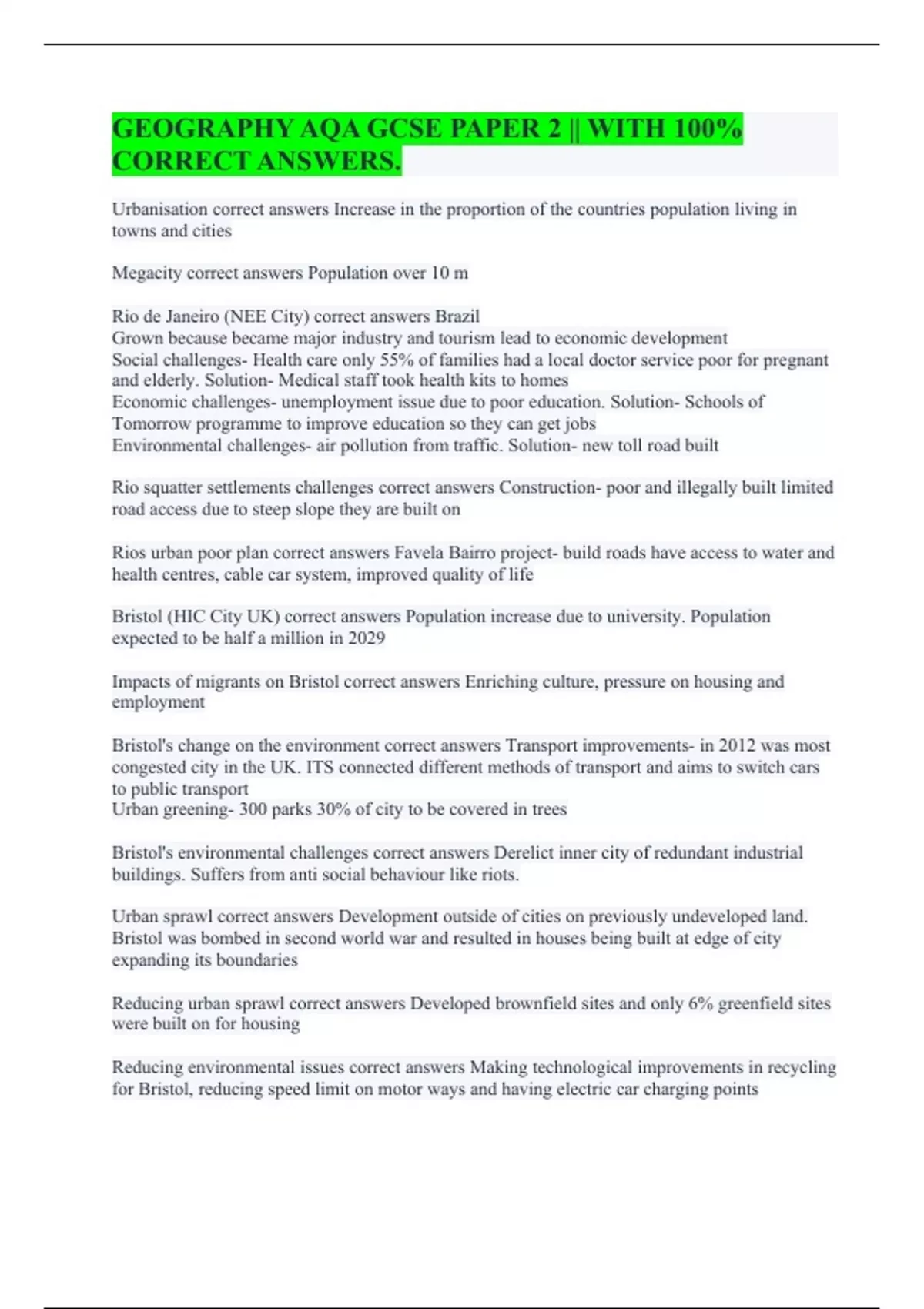 GEOGRAPHY AQA GCSE PAPER 2 || WITH 100% CORRECT ANSWERS.
