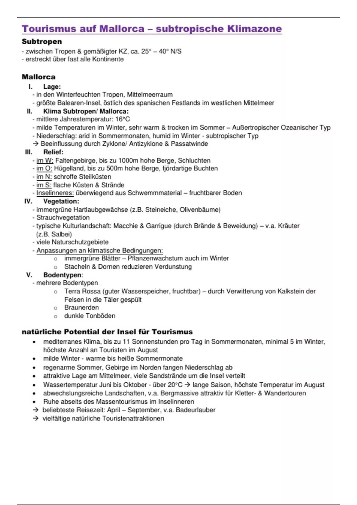 Zusammenfassung Tourismus auf Mallorca - Geografie Abitur