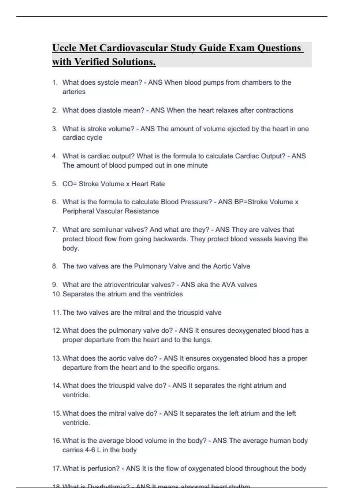 Ucla Emt Cardiovascular Study Guide Exam Questions with Verified Solutions.