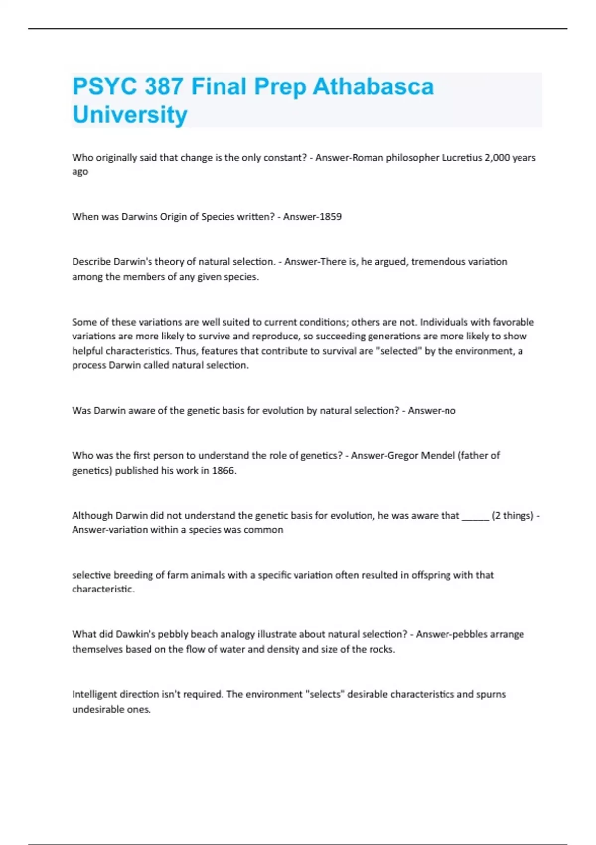 PSYC 387 Final Prep Athabasca University Questions & Answers Already Passed!!
