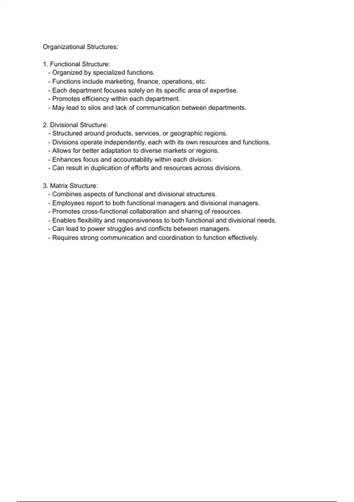 This document is a class note that helps understand the organisation system used in business management structure