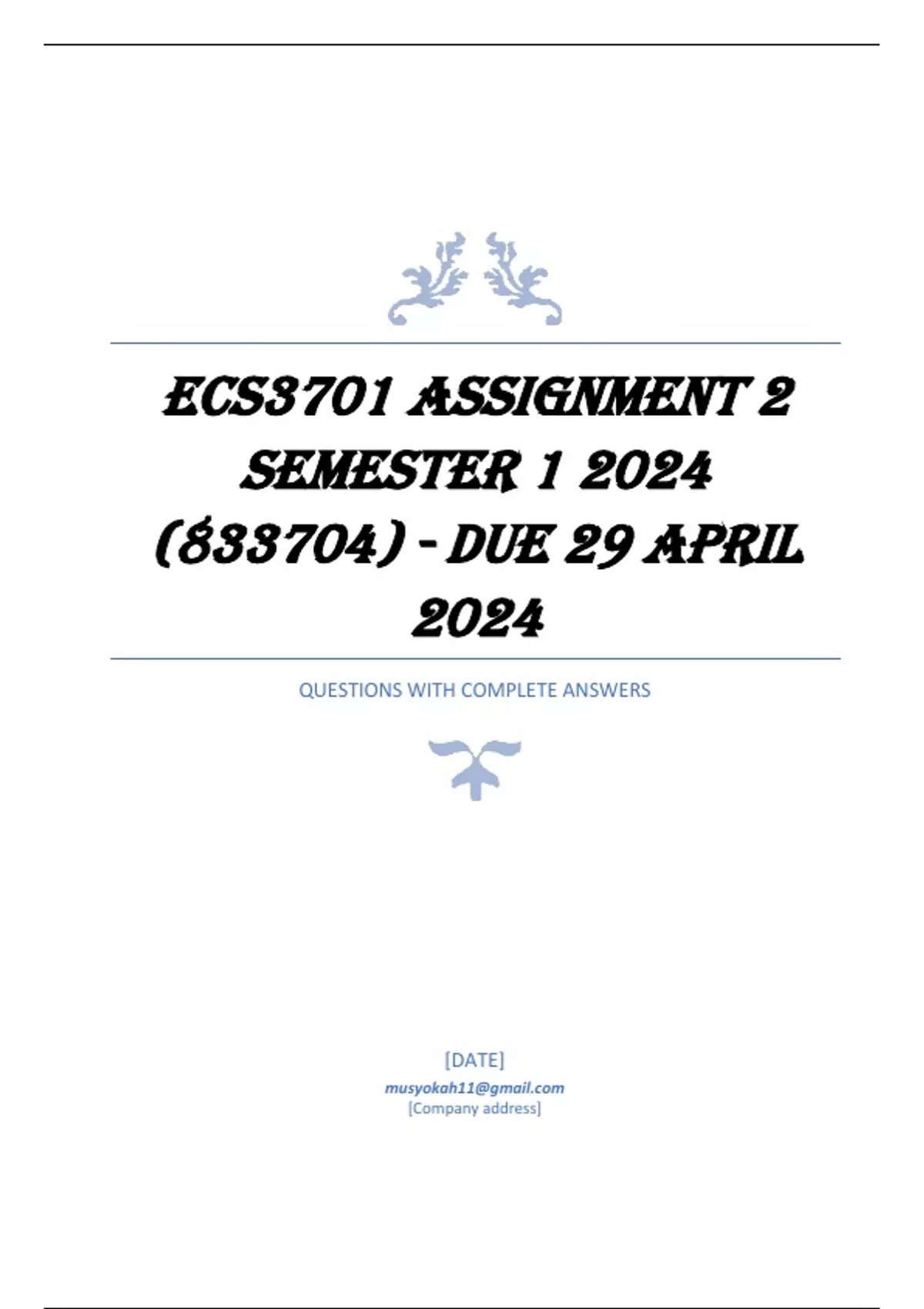 , ECS3701 Assignment 2 Semester 1 2024 (833704) - DUE 29