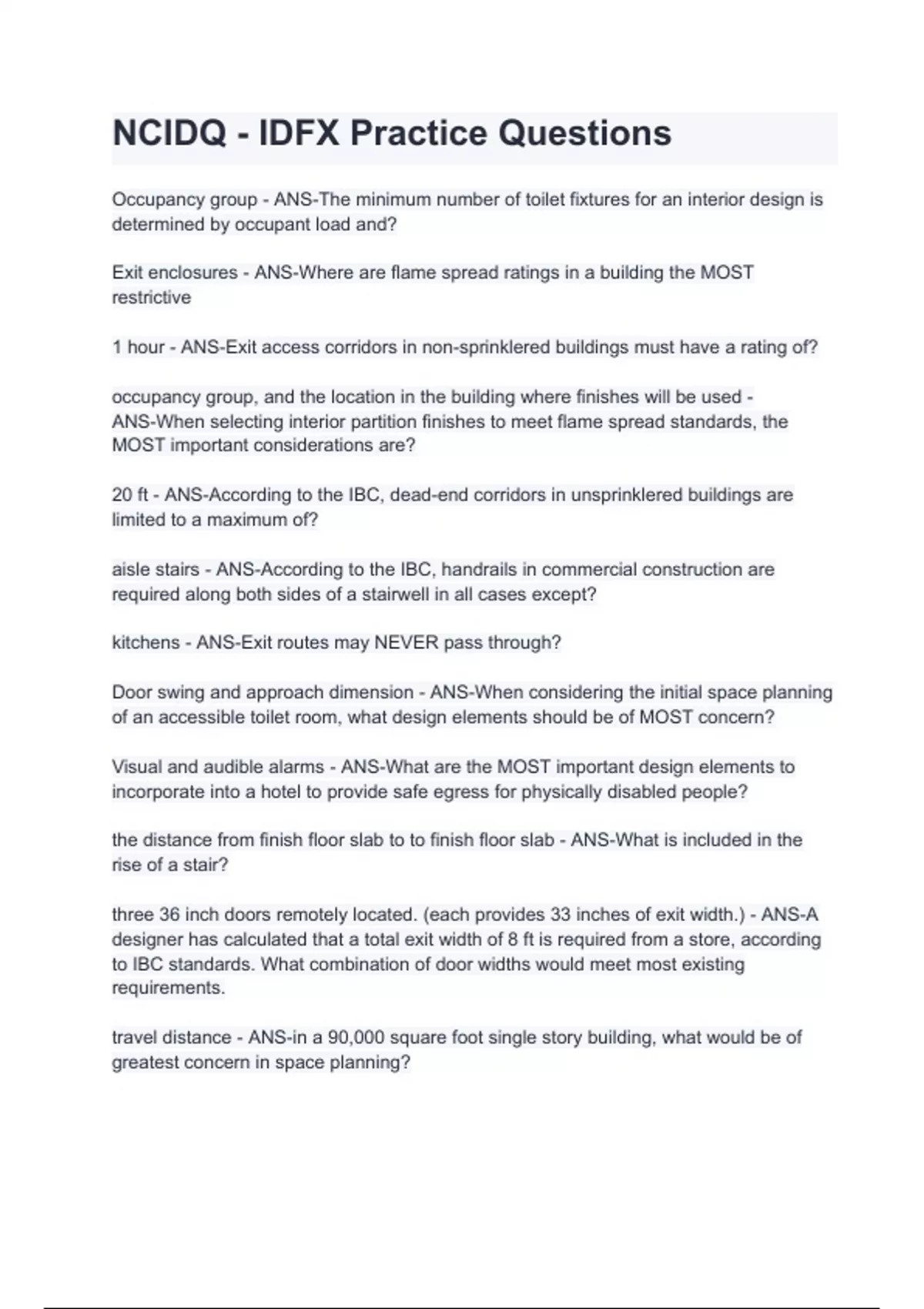 NCIDQ - IDFX Practice Questions with complete solution / Latest updated .