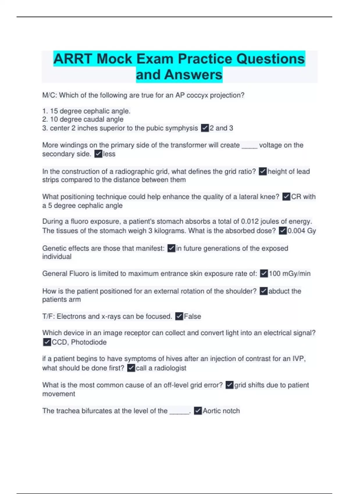 ARRT Mock Exam Practice Questions and Answers