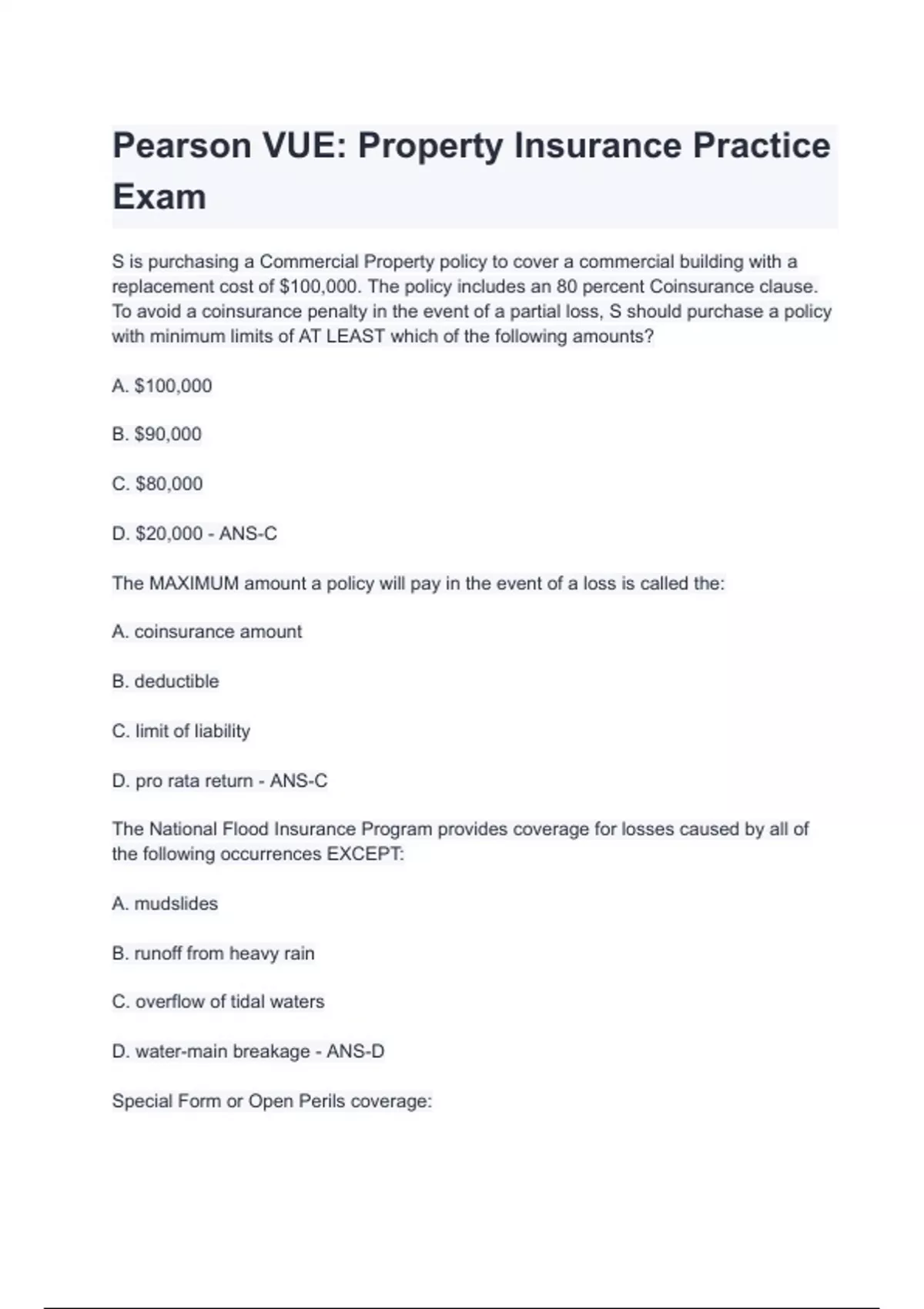 Pearson VUE_ Property Insurance Practice Exam