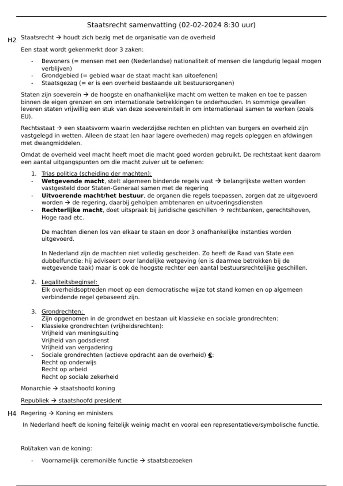 Staatsrecht samenvatting (02-02-2024 8:30 uur)