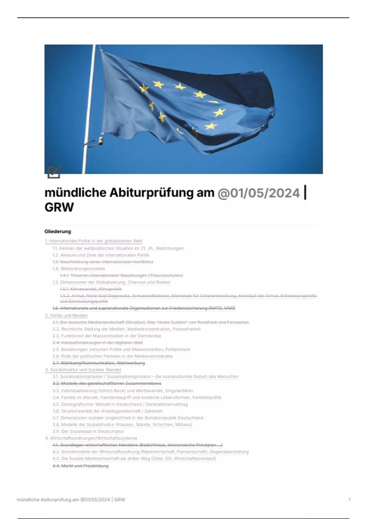 Das Dokument bietet eine umfassende Gliederung zu den Themen internationale Politik, Politik und Medien, Sozialstruktur und sozialer Wandel, Wirtschaftsordnungen und -systeme sowie Legitimität und Herrschaft. Es behandelt weltpolitische Situationen, Globalisierung, Medienlandschaft, soziale Ungleichheit, wirtschaftliche Modelle und Grundprinzipien der Demokratie, einschließlich der Rollen von Parteien und Wahlen.