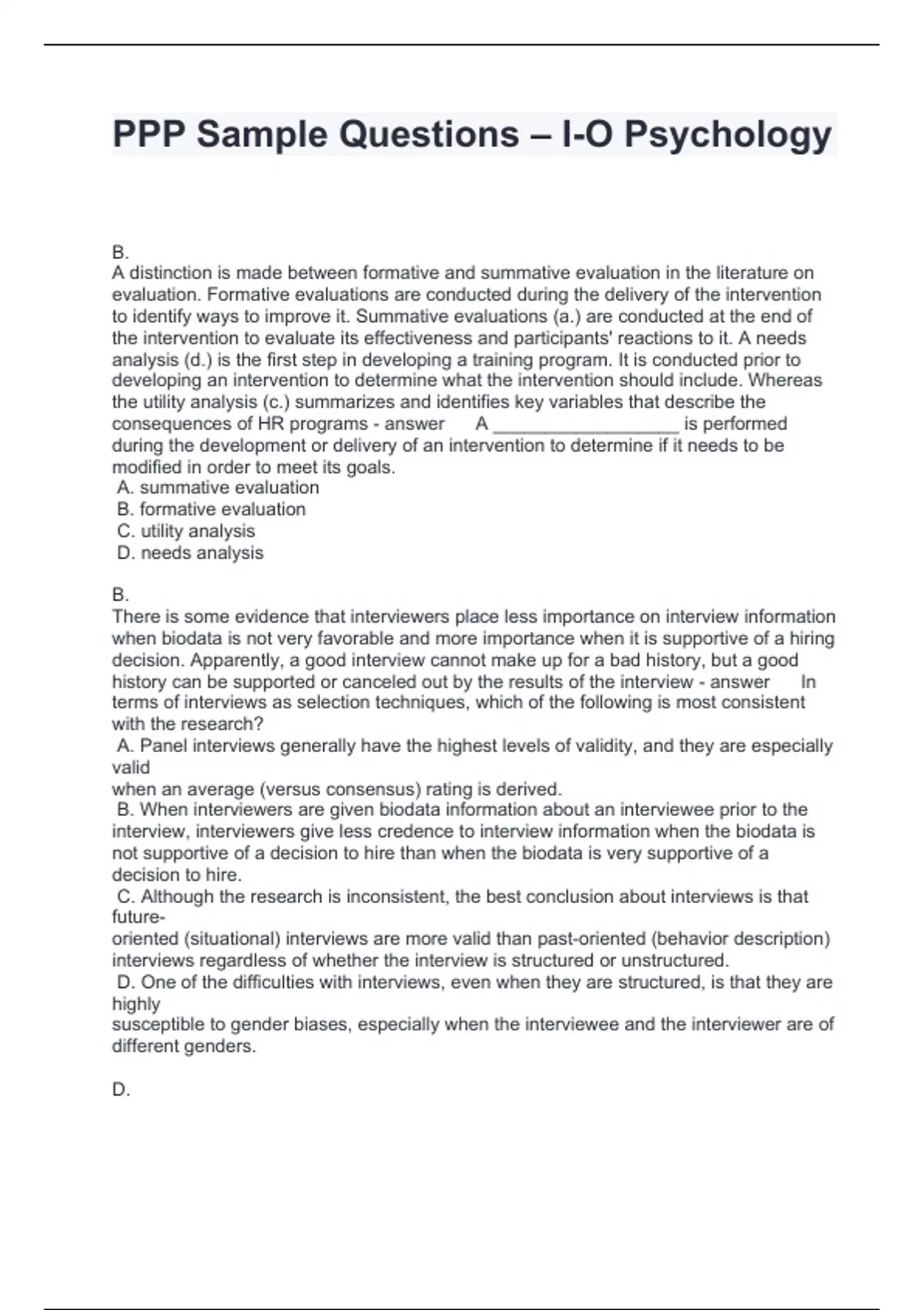 PPP Sample Questions – I-O Psychology Questions with solutions