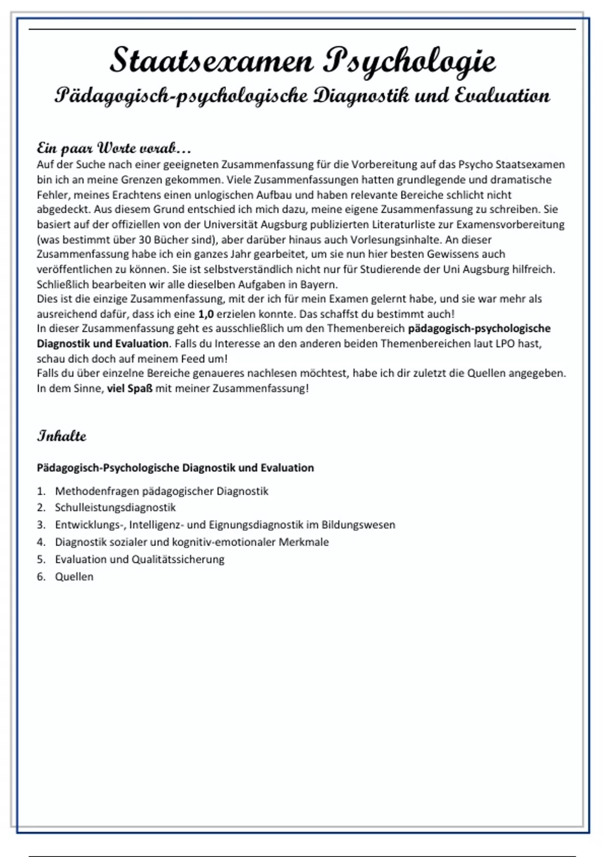 In dieser Zusammenfassung geht es ausschließlich um den Themenbereich pädagogisch-psychologische