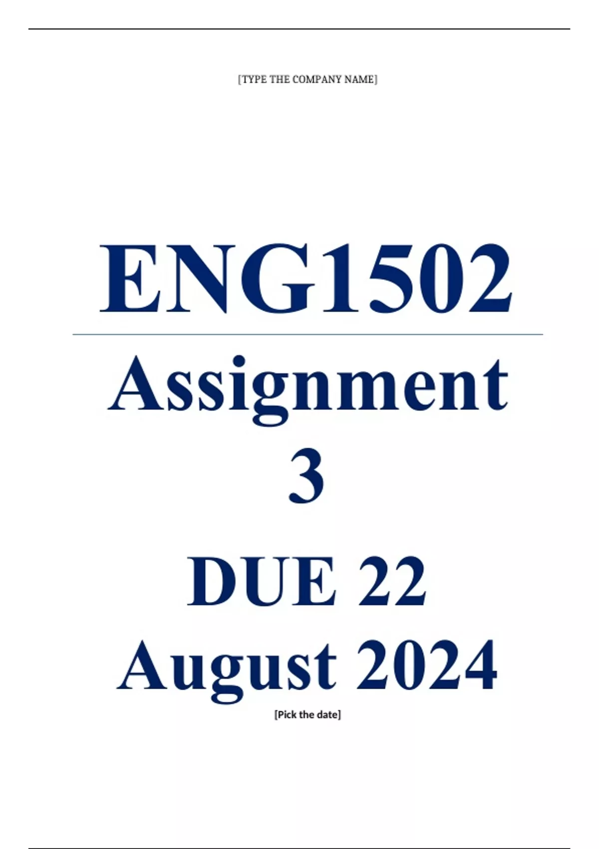 Exam (elaborations) ENG1502 Assignment 3 (COMPLETE ANSWERS) 2024 (720331)- DUE 22 August 2024 • Course • Foundations in English Language Studies (ENG1502) • Institution • University Of South Africa (Unisa) • Book • How to Analyse Texts ENG1502 Assignment 3 (COMPLETE ANSWERS) 2024 (720331)- DUE 22 August 2024 ; 100% TRUSTED workings, explanations and solutions.