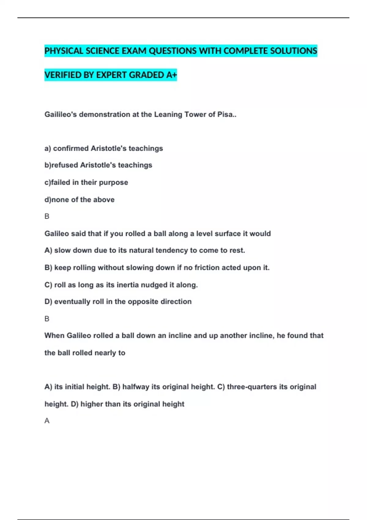 When Galileo rolled a ball down an incline and up another incline, he found that