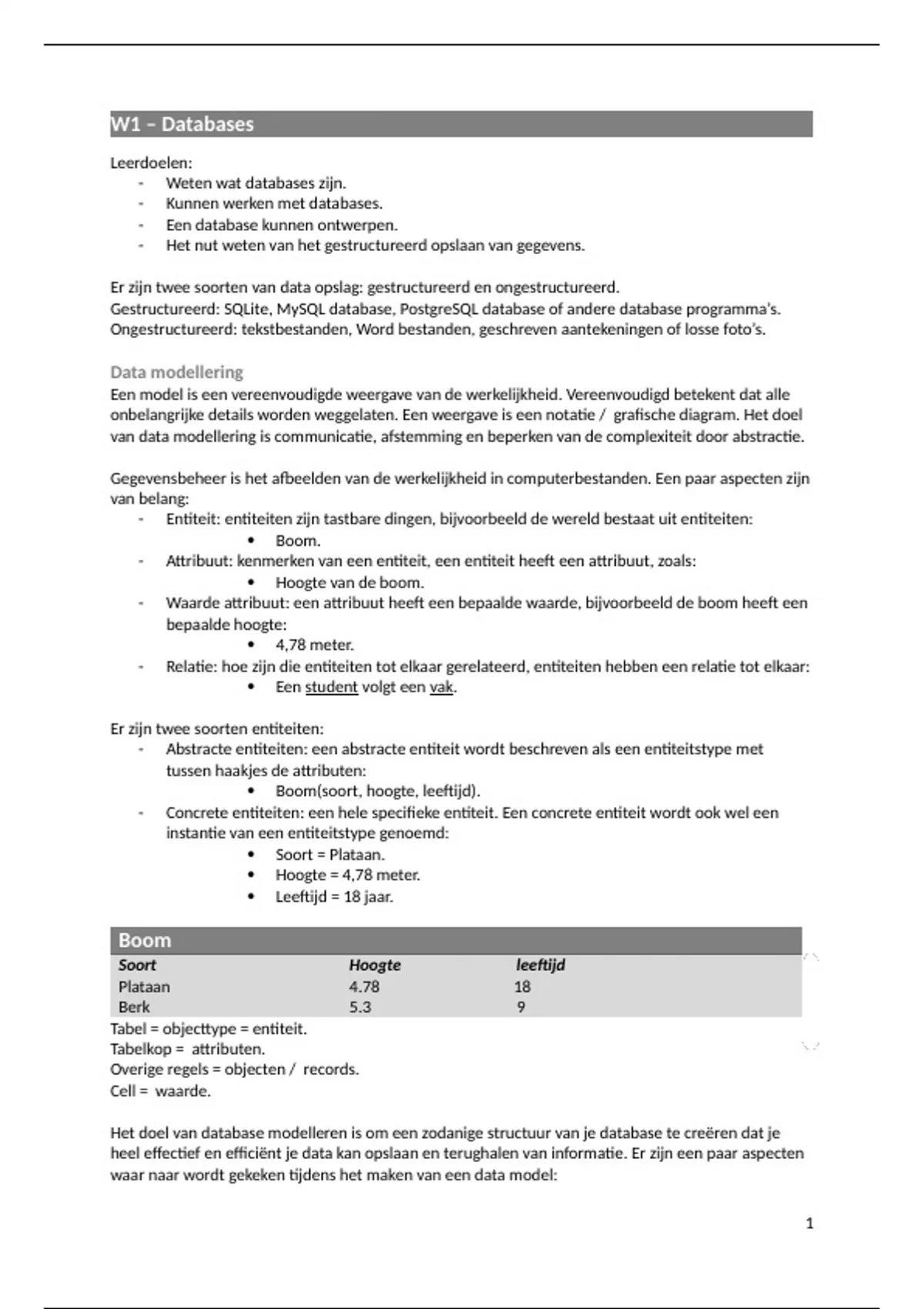 - Waarde attribuut: een attribuut heeft een bepaalde waarde, bijvoorbeeld de boom heeft een