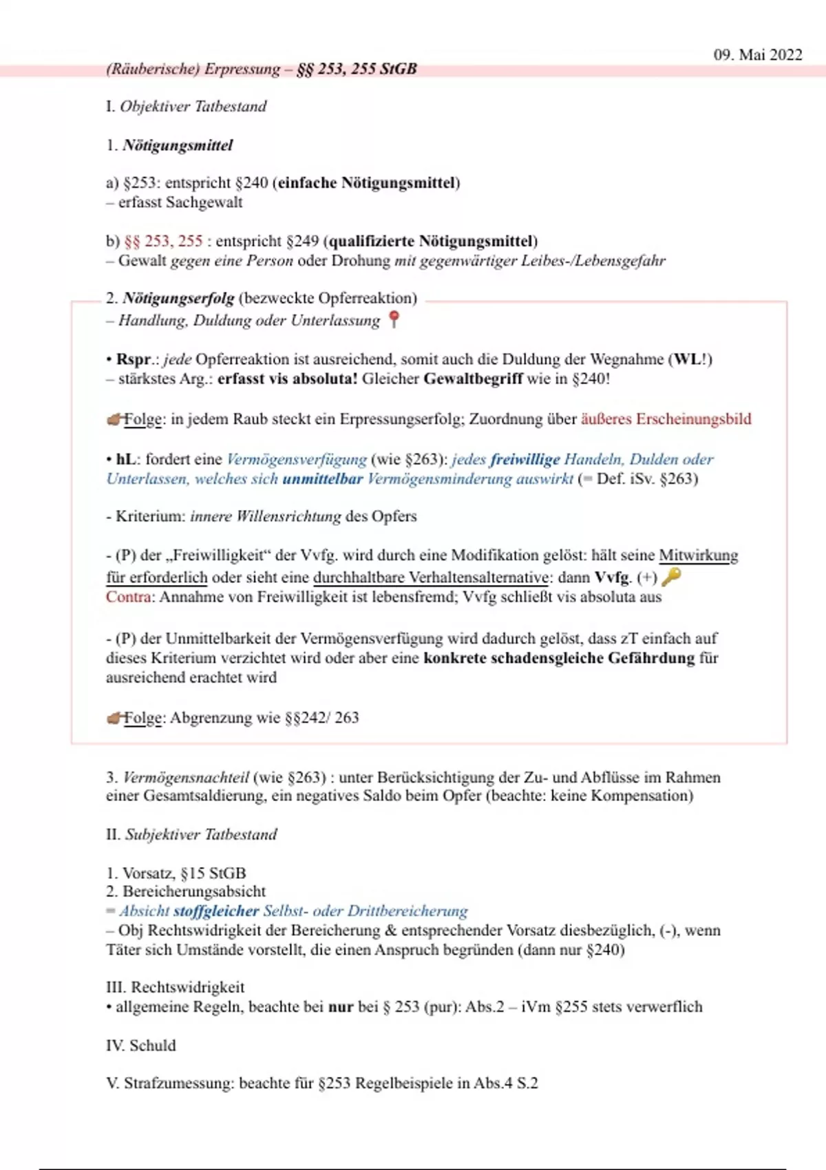 • allgemeine Regeln, beachte bei nur bei § 253 (pur): Abs.2 – iVm §255 stets verwerflich
