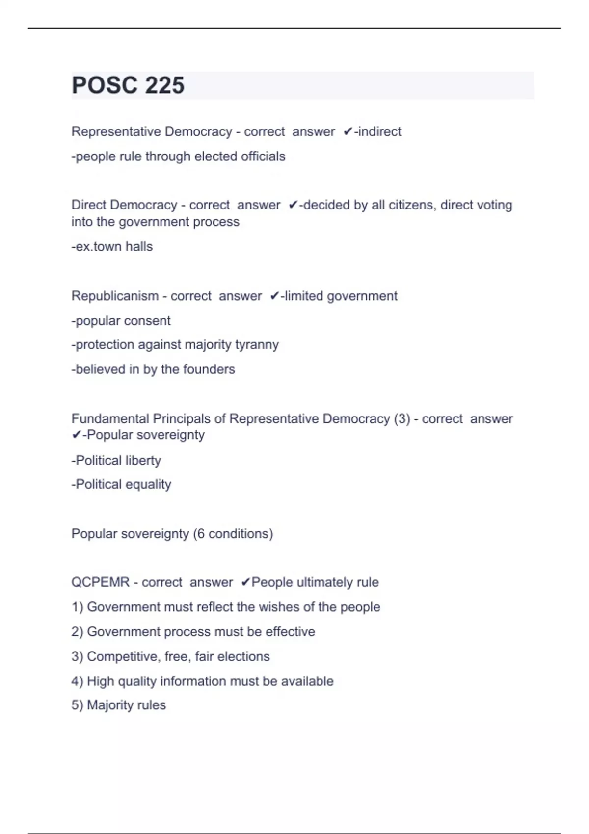 Fundamental Principals of Representative Democracy (3) - correct answer