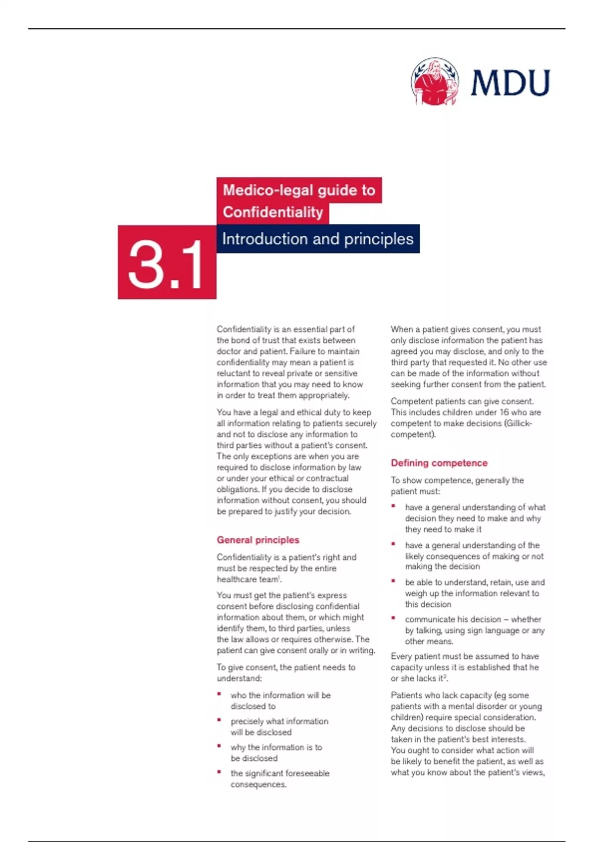 Medico-legal guide to Confidentiality Introduction and principles 3.1 Questions and Correct Answers with 100% Accurate , Verified , Latest Update 2024 ,Graded A+, Complete solution
