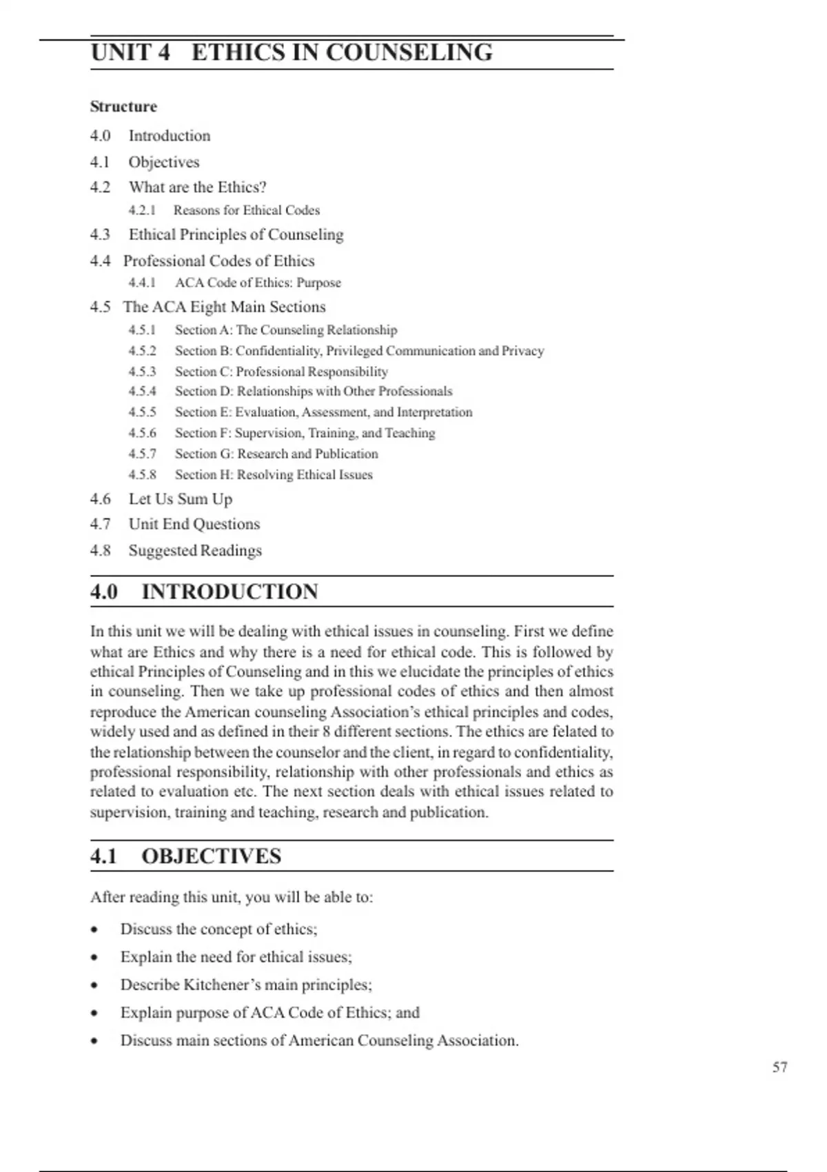 UNIT 4 ETHICS IN COUNSELING Counseling