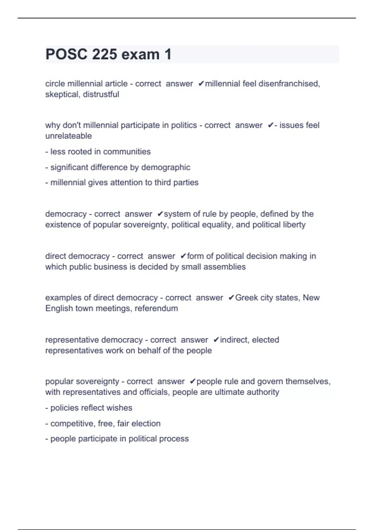 political liberty - correct answer ✔principle that citizens in a democracy are