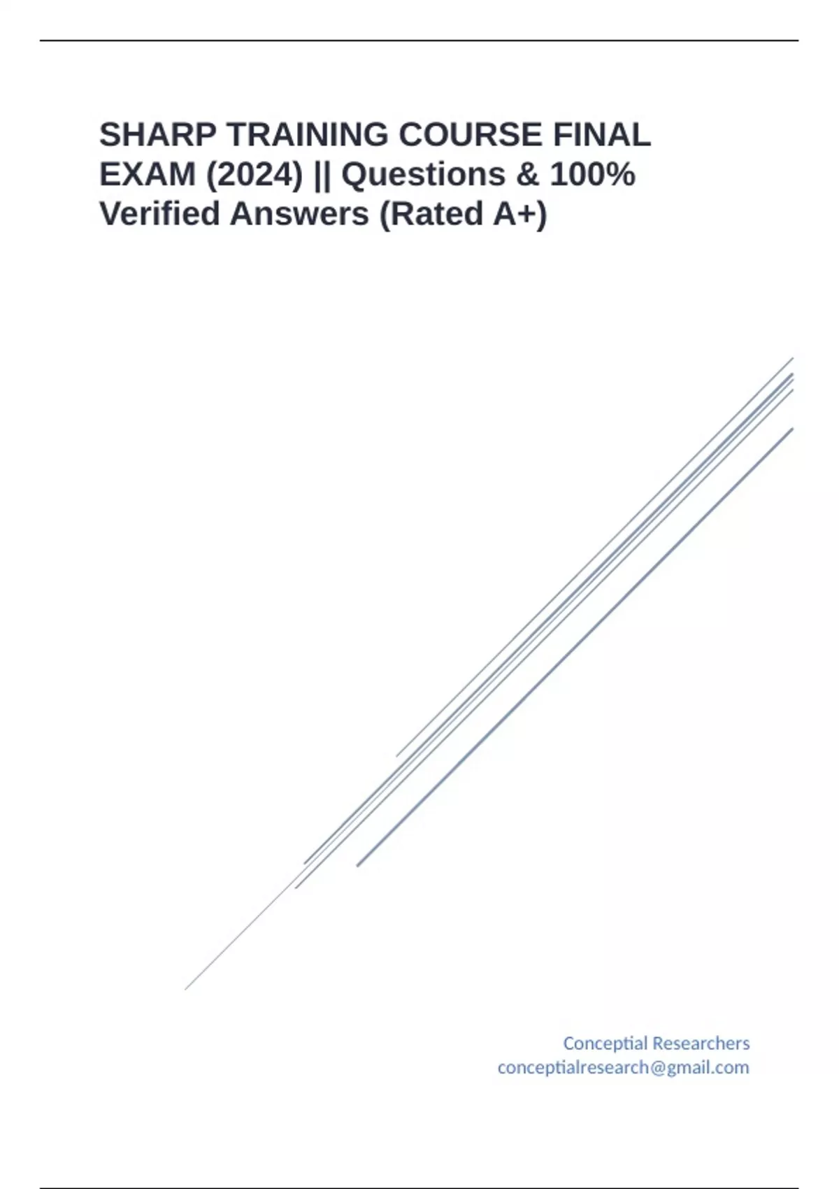 SHARP TRAINING COURSE FINAL EXAM (2024) || Questions & 100% Verified Answers (Rated A+)